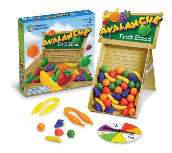 Steady... don't spill the fruit! Spin the wheel, then use the jumbo tweezers to pick or place fruit. Develops fine motor skills, especially the all-important pincer grasp that prepares children for handwriting.