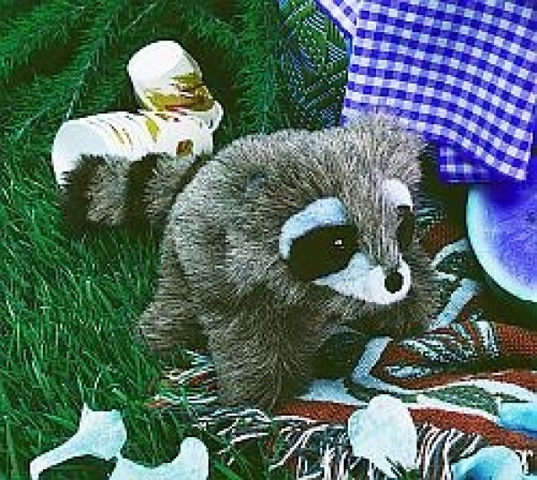 This little masked critter would rather snuggle in your arms than steal food! With a bit of encouragement, you'll have it acting as curious as only a raccoon can be. He also has a moveable head and arms.