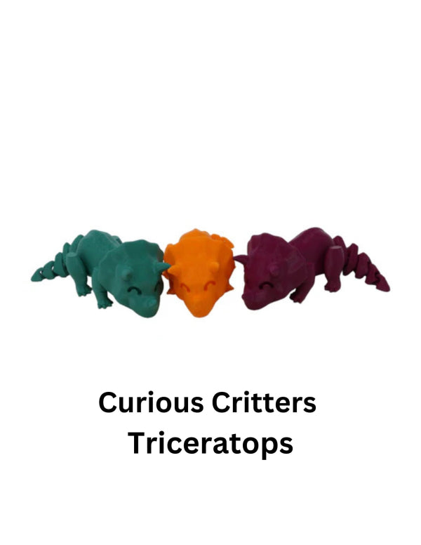 From the most demanding playroom adventures to a permanent spot on your work desk, Curious Critters are vibrant, unique, and ready for whatever you throw their way. The tactile and moveable limbs create a unique sensation that leaves an impression. Whether you're absently fidgeting with one while on that work call that is taking too long or your kids are creating a crazy adventure. With the Curious Critters at the center of it, you can rest assured that any of our Curious Critters are up to the challenge. The perfect option to surprise yourself or someone close to you with a long-lasting, exciting, and thoughtful gift. 3-D Printed in Canada. Printed using PLA which is a renewable, environmentally friendly, and non-toxic thermoplastic and polymer.