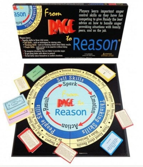 This game is designed to teach players how to control anger and avoid violence. The game takes players through situations by looking at the spark, the emotion, the action and the result. Players develop self skills, people skills, and thinking skills. Appropriate for Grades 8 through adult Includes game board, cards and instructions.