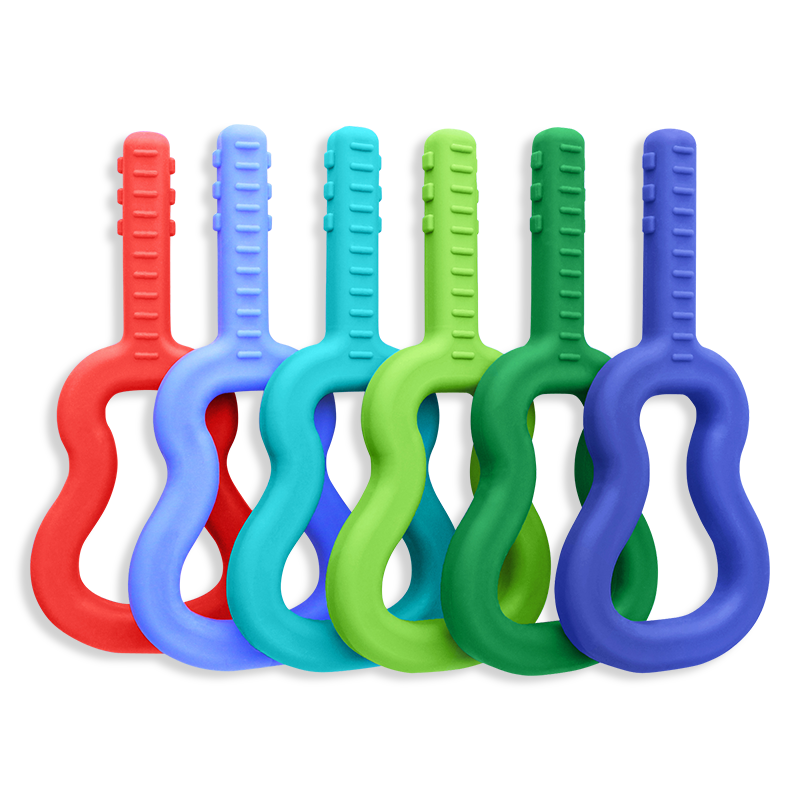 ARK's Guitar isn't your ordinary acoustic guitar - it's an "achewstic" guitar! This innovative oral motor chew features a long extension to reach the back molars, a smooth loop that's easy to hold, and bumps and ridges (on the stem) that resemble the strings/knobs of a real guitar while also providing extra sensory input.