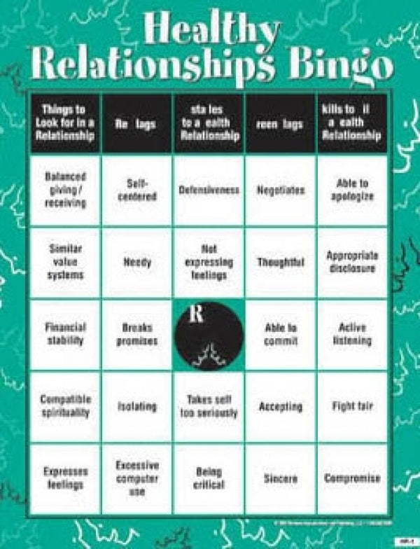 Teaches the skills needed for a healthy relationship and examines key topics like Things to Look For, Red Flags, Green Flags, Obstacles, and Healthy Relationship Skills. Engaging and educational! This game is also part of the BINGO! for Adults Set of 7 Bingos. To learn more about this set go to search and type Bingo.