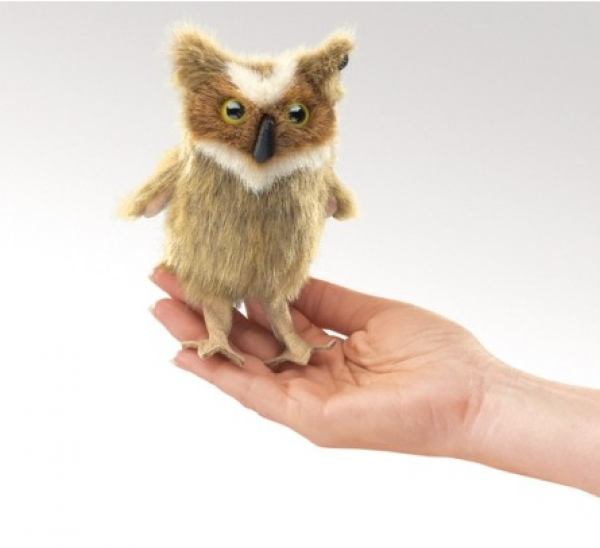 With her big watchful eyes, this MINI GREAT HORNED OWL finger puppet seeks a perch atop your finger. Whooo wants to play?