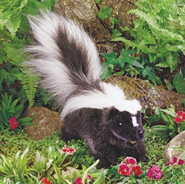White stripes beautifully highlight the elegant sweep of long black fur on the hazardous hindquarters of this skunk puppet. With a workable mouth and tail, she can be posed in a way that she's actually seeming to talk. Perfect for play therapy or counseling children who have witnessed trauma, have been abused, or for parents whose children have difficulties communicating what their needs are. Well made and colorful, this is a great gift item or one for the cache of therapy tools.