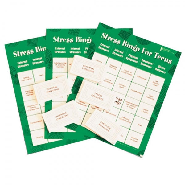 Five stress factors are examined: external stressors, internal stressors, physical stress symptoms, emotional/behavioral stress symptoms, and stress relievers. Game has 16 laminated Bingo cards, 75 calling cards, facilitator's instruction sheet, and reproducible handouts meant to be used in clinics or classrooms.