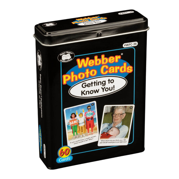 “What is something that you are thankful for?” Sharpen your students’ expressive, comprehension, and social skills with Webber Photo Cards – Getting to Know You! This deck has 60 photo cards paired with stimulating questions for getting to know someone. Getting to Know You! includes questions about a student’s present, past, and future, along with family questions, affirming questions, and imagination questions. Use the cards one-on-one or share them as a group.