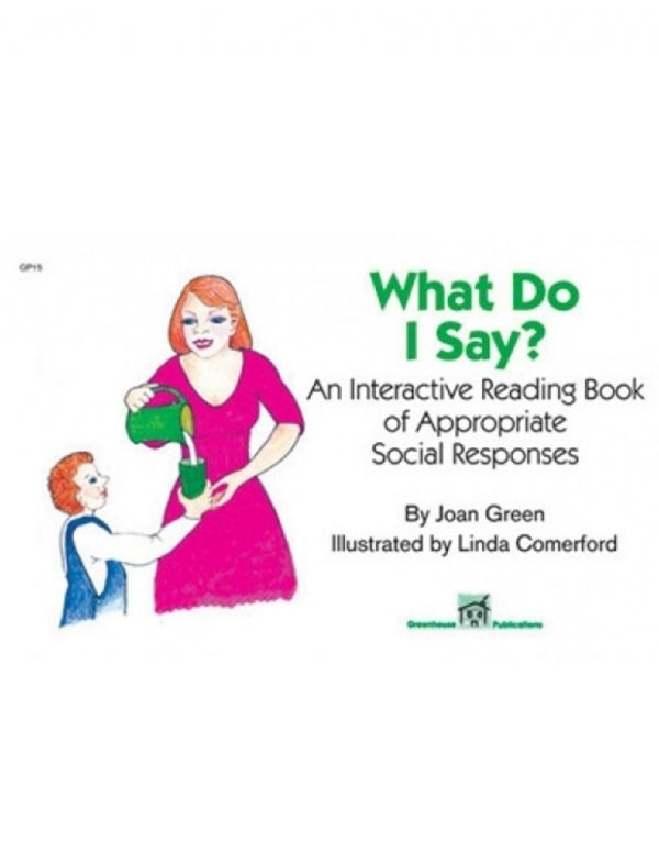 Appropriate responses to common, everyday social conversation and situations is the main focus of this book. (Ex.) Someone says, "You look nice today." What do I say? (answer) "Thank you!" By attaching a picture representation of an appropriate response to different questions or situations, students begin to learn what might be an appropriate response in those situations. Are there other equally appropriate responses?